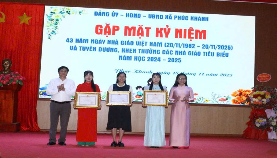 XÃ PHÚC KHÁNH KỶ NIỆM 43 NĂM NGÀY NHÀ GIÁO VIỆT NAM VÀ TUYÊN DƯƠNG, KHEN THƯỞNG NHÀ GIÁO TIÊU BIỂU NĂM 2024 - 2025