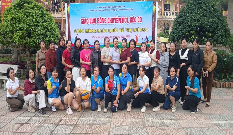 Hòa chung không khí phấn khởi đó, chiều ngày 06/3/2026 Trường Mầm non Việt Tiến đã phối hợp cùng Trường TH&THCS Việt Tiến tổ chức buổi giao lưu bóng chuyền hơi, kéo co đầy ý nghĩa. Đây không chỉ là hoạt động thể thao đơn thuần mà còn là món quà tinh thần đặc biệt dành tặng cho các nữ cán bộ, giáo viên, nhân viên của hai nhà trường.